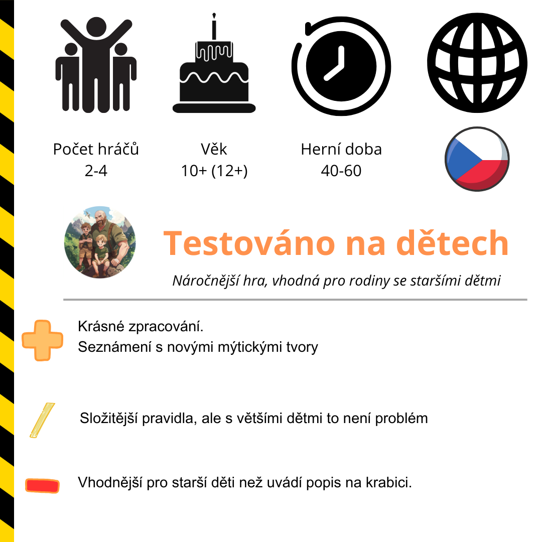 Přestože na krabici je uvedeno, že hra je vhodná pro hráče od 10 let, hned po první partii jsme dospěli k názoru, že je lépe hratelná pro děti od 12 let.